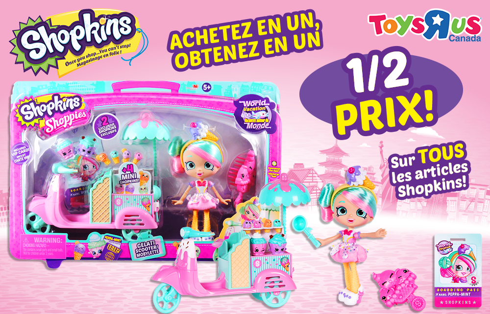 Achetez-en 1 et obtenez le 2e à 1/2 PRIX! Sur TOUS les coffrets et figurines Shopkins chez Toys "R" Us!