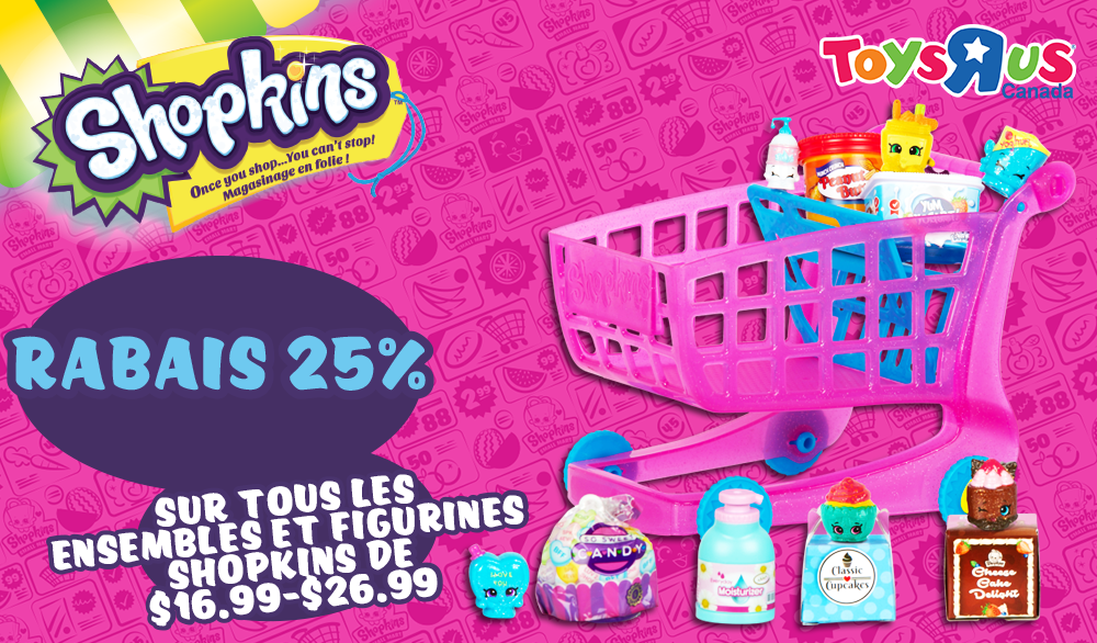 RABAIS 25% sur tous les ensembles et figurines Shopkins de $16.99-$26.99 chez Toys "R" Us!